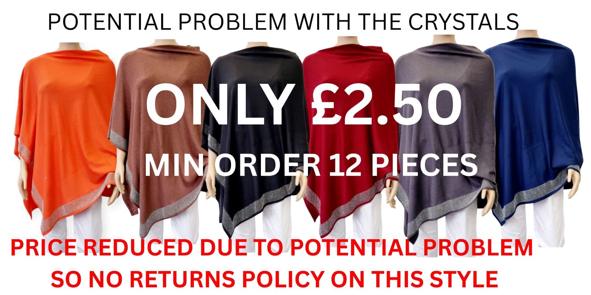 Home / CLOTHING / Ponchos / PON9710 BLACK CRYSTAL HEM PONCHO PON9710 BLACK CRYSTAL HEM PONCHO PON9710 BLACK CRYSTAL HEM PONCHO £2.50 Stock Status: In Stock Product Information Ladies Crystal Hem Poncho One Size Black